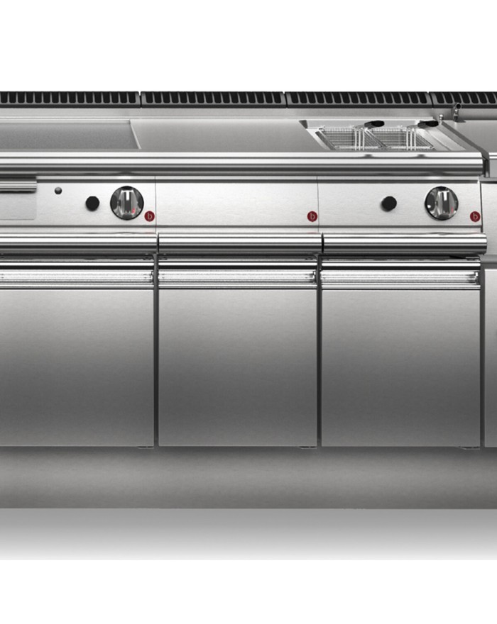 Leicht zu kombinieren, dient es als Träger für Elemente wie Regale und Geräte und kann sowohl offen als auch geschlossen zur Aufbewahrung von Produkten verwendet werden.