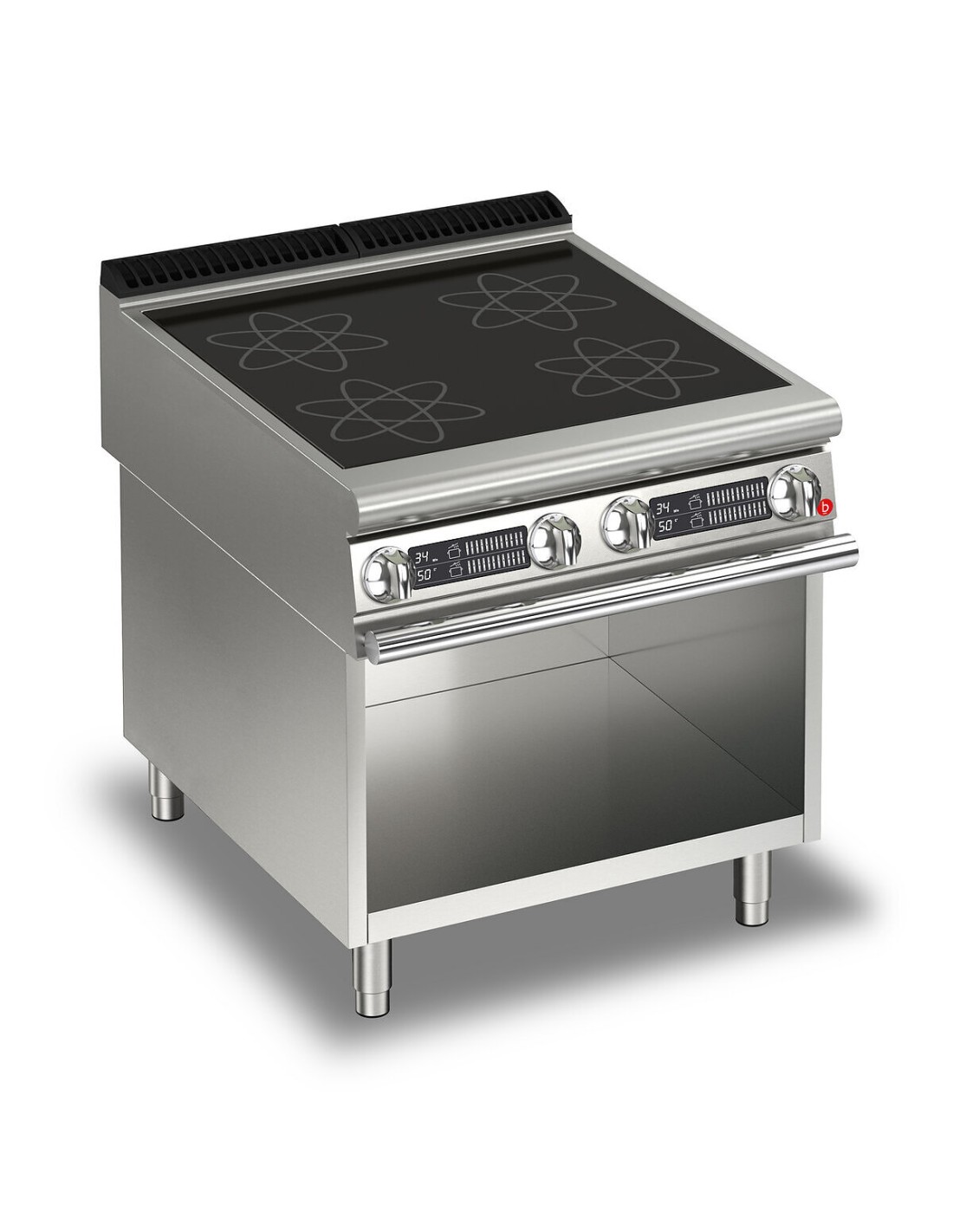 Leistung in 12 Stufen einstellbar Professionelle Komponenten, die getestet wurden, um einer intensiven Nutzung über einen längeren Zeitraum standzuhalten Sicherheitssensor zum Schutz vor Überhitzung. Kochzonen mit 5KW Leistung Mechanisch gesteuerte Induktion bereit für IOT-Verbindung zur Cloud Serigrafien zur Kennzeichnung der Kochstellen.