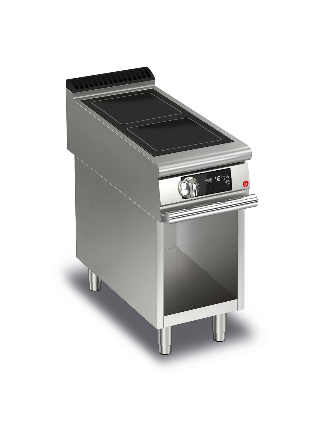 Die Temperatur wird über einen Energieregler geregelt, der es ermöglicht, zwei Weiten der Heizzone entsprechend der Größe des Topfbodens auszuwählen. Temperatur der Brennfläche 70° bis 450° C Datenerfassung, Betriebsüberwachung, Fernsteuerung sind nur einige der Möglichkeiten, die Ihnen die Konnektivität zur Verfügung stellt. Dank der durch spezielle Tests erlangten Strahlwasserschutz-Zertifizierung (IPX5) können die Knöpfe und Unterknöpfe am Ende des Arbeitstages gewaschen werden, ohne die Funktionalität und Sicherheit zu beeinträchtigen. Die vordere Leiste ist ein bequemer Halt für den Koch; sie hält einen sicheren Abstand zur Arbeitsfläche und schützt so vor versehentlichen Zusammenstossen mit dem, was auf der Arbeitsfläche liegt, und gleichzeitig mit den Griffen.