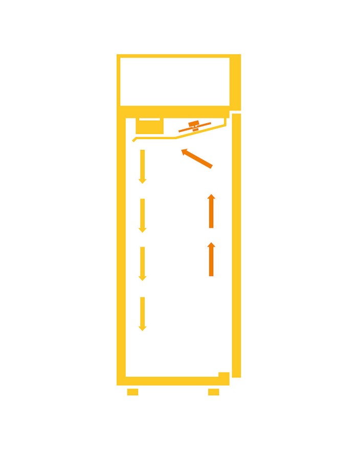 Kühlaggregat außerhalb der Kühlzelle, mit Zwangsbelüftung von oben nach unten