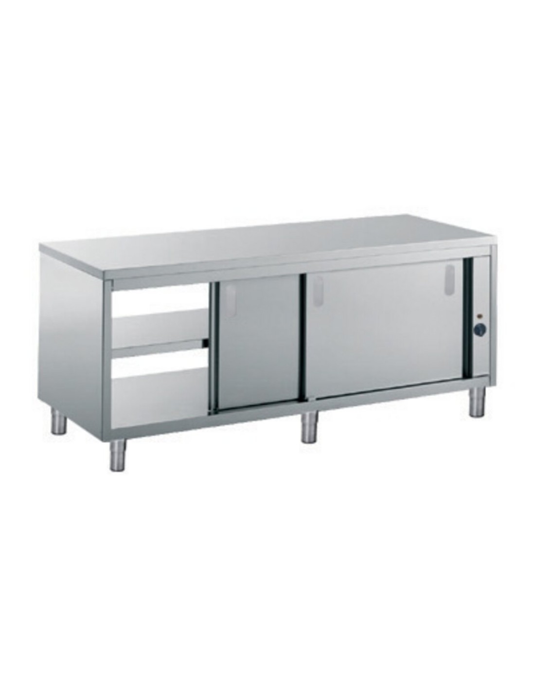 WARMER DURCHREICHE-SCHRANKTISCH -4 SCHIEBETÜREN UND UNTERER EINLEGEBODEN