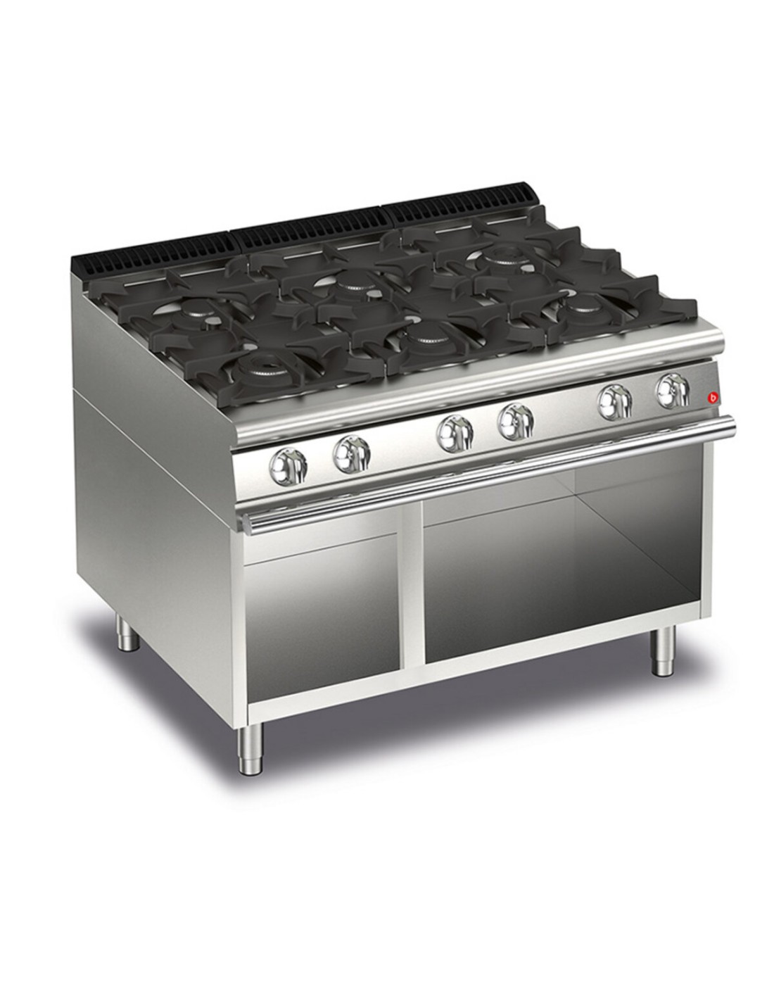 Gaskocher: Vollständig geschmiedete AISI304 topCast-Eisenbrenner mit hoher Leistung 3,5 - 5,7 - 7 und 10 kW, geschützte Zündflamme mit abnehmbarem und leicht abwaschbarem Schutz, säurebeständige Grillroste, Strahlwasserdichtheit (IPX5), Abwaschbarkeit und Langlebigkeit, ideal für den intensiven Gebrauch in Profiküchen.Sie werden als die Kochgeräte schlechthin bezeichnet, weil sie in jeder Umgebung unentbehrlich sind und eine große Vielseitigkeit für alle Arten des Kochens bieten: Gasherde sind in vielen Kombinationen erhältlich, als Aufsatz, auf