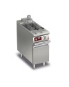 Professionelle elektrische Friteusen. Tanks aus rostfreiem Stahl AISI 18/10 mit Kaltzone und Schaumausdehnungszone. Ölablasshähne. Sicherheitsthermostat (230°C) gegen übermäßige Ölüberhitzung Elektrische Version: Beheizung durch ein gepanzertes Heizelement aus Edelstahl AISI 304 im Inneren des Tanks, das in der Version mit 22-Liter-Tank um mehr als 90° drehbar ist. Vollständig herausnehmbares Heizelement in der Version mit 10- und 15-Liter-Behälter.GAS Geformte Brenngutträger mit großem Fassungsvermögen und einer großen vertikalen Expansionszone, die eine Schaumbildung beim Laden verhindert. Automatischer Regelthermostat Feuerschutzthermostat (230°C). Ölablasshähne. Halterung für Körbe und Deckel. Gas-Modelle Stahlrohrbrenner außerhalb des Tanks. Piezo-Zündung des Zündbrenners. Elektrische Modelle Anhebbare und abnehmbare gepanzerte Heizelemente aus Edelstahl. Optisches Signal, wenn die programmierte Temperatur erreicht ist. Warnleuchte 'Gerät unter Spannung. Die Tanks haben eine große Ausgießfläche und eine kalte Zone am Boden, um Lebensmittelpartikel aufzufangen und die Lebensdauer des Öls zu verlängern. Inklusive Schmutzfangkonvektor. Dieses Element erleichtert die Ablagerung von Schmutz in der kalten Zone und verhindert, dass sich der Schmutz in den heißen Zonen des Tanks ablagert. Der Lebenszyklus des Öls wird dadurch verlängert. Dank der durch spezielle Tests erlangten Strahlwasserschutz-Zertifizierung konnen die Knöpfe und Unterknöpfe am Ende des Arbeitstages gewaschen werden, ohne dass die Funktionalität und Sicherheit beeinträchtigt wird. Die vordere Leiste ist ein bequemer Halt für den Koch; sie hält einen sicheren Abstand zur Arbeitsfläche und schützt so vor versehentlichen Zusammenstossen mit dem, was auf der Arbeitsfläche liegt, und gleichzeitig mit den Griffen.