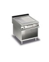 Bratplatte: 15 mm starke, vom Kochfeld völlig unabhängige Kochplatte, große Ablaufrinne über den gesamten Umfang der Platte zum Auffangen von Bratrückständen, nach vorne abfallend zum Ableiten von Flüssigkeiten in die große Fettauffangschublade, nicht geschweißte Platte für schnelle Wartung und eventuellen Austausch im Betrieb, gleichmäßige Wärmeabgabe, thermische Abschaltung zur Erleichterung des Benutzers und der angrenzenden Maschinen und Reduzierung des Verbrauchs um 15 % im Vergleich zu herkömmlichen Modellen