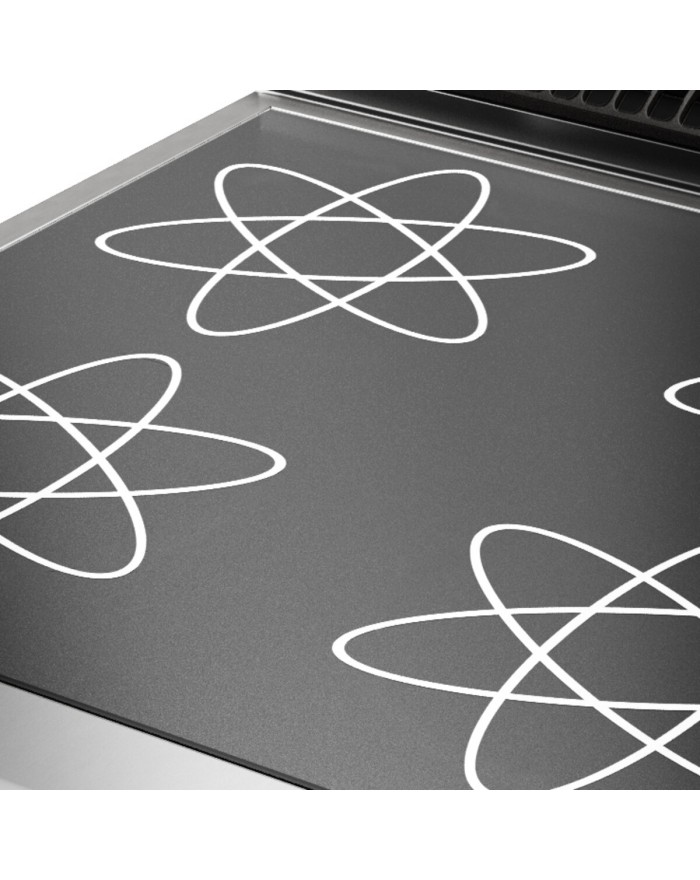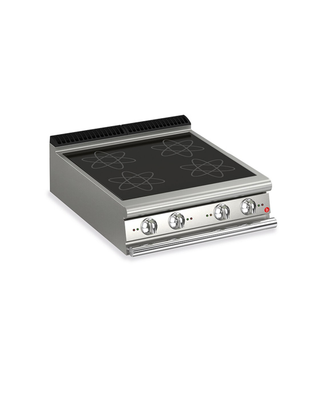 Sicherheitssensor zum Schutz vor Überhitzung. Die Leistung kann aus 10 verschiedenen Stufen für alle Arten des Kochens gewählt werden, von Express bis delikat. Dank der durch spezielle Tests erlangten Strahlwasserschutz-Zertifizierung (IPX5) können die Knöpfe und Unterknöpfe am Ende des Arbeitstages gewaschen werden, ohne die Funktionalität und Sicherheit zu beeinträchtigen. Die vordere Leiste ist ein bequemer Halt für den Koch; sie hält einen sicheren Abstand zur Arbeitsfläche und schützt so vor versehentlichen Zusammenstossen mit dem, was auf der Arbeitsfläche liegt, und gleichzeitig mit den Griffen. TOP-Version für den Einbau in das Fach 4 unabhängige Kochzonen mit je 5 kW