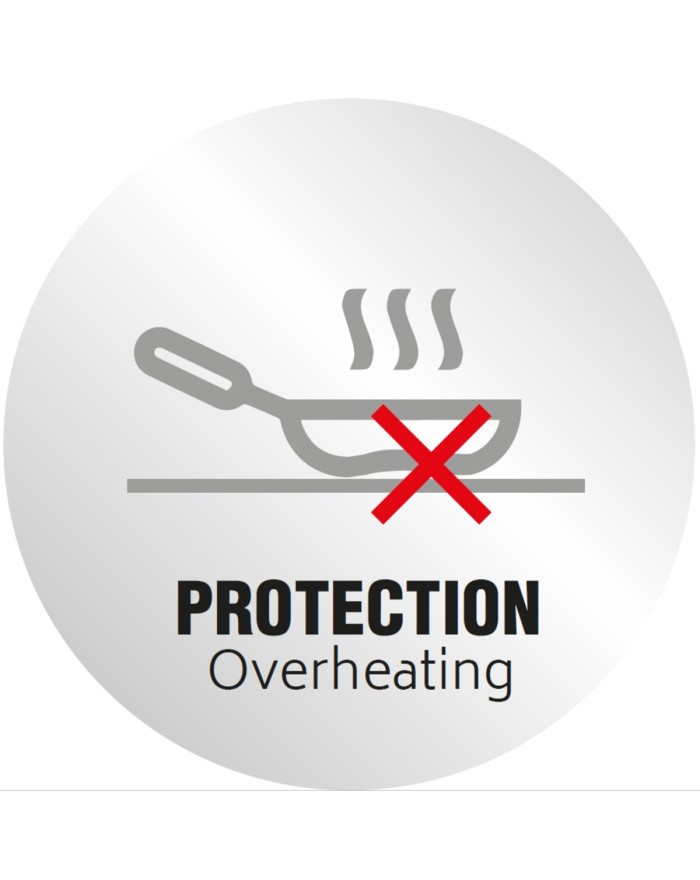 Beheizung durch einen Induktor, der mit einer Vorrichtung ausgestattet ist, die das Vorhandensein des Kochgefäßes auf der Kochzone erkennt und die Heizung automatisch ein- und ausschaltet, sowie einer Vorrichtung gegen Überhitzung.