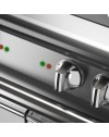 Sicherheitssensor zum Schutz vor Überhitzung. Die Leistung kann aus 10 verschiedenen Stufen für alle Arten des Kochens gewählt werden, von Express bis delikat. Dank der durch spezielle Tests erlangten Strahlwasserschutz-Zertifizierung (IPX5) können die Knöpfe und Unterknöpfe am Ende des Arbeitstages gewaschen werden, ohne die Funktionalität und Sicherheit zu beeinträchtigen. Die vordere Leiste ist ein bequemer Halt für den Koch; sie hält einen sicheren Abstand zur Arbeitsfläche und schützt so vor versehentlichen Zusammenstossen mit dem, was auf der Arbeitsfläche liegt, und gleichzeitig mit den Griffen. 2 unabhängige Kochzonen mit je 5 kW Version mit FULL SURFACE Kochzone TOP-Version für den Einbau in das Fach