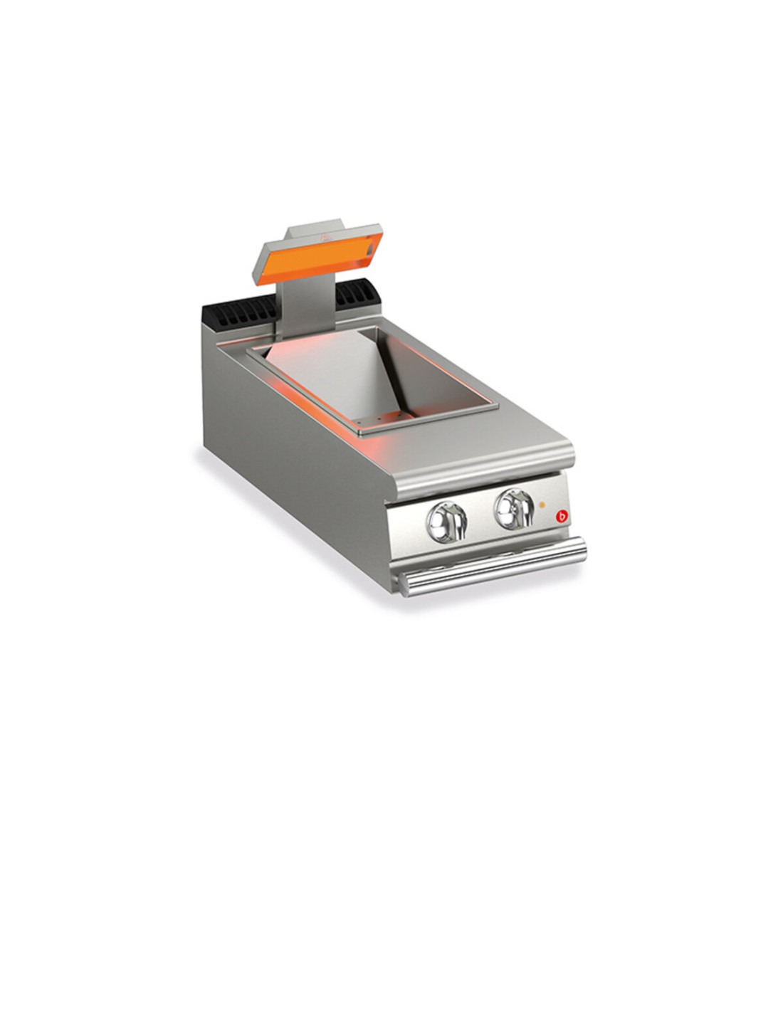 Geräte, die nach der Niederspannungsrichtlinie 2014/35/EU gemäß dem internationalen CB-Schema zertifiziert sind. Dank der durch spezielle Tests erlangten Strahlwasserschutz-Zertifizierung (IPX5) können die Knöpfe und Unterknöpfe am Ende des Arbeitstages gewaschen werden, ohne die Funktionalität und Sicherheit zu beeinträchtigen. Die vordere Leiste ist ein bequemer Halt für den Koch; sie hält einen sicheren Abstand zur Arbeitsfläche und schützt so vor versehentlichen Zusammenstossen mit dem, was auf der Arbeitsfläche liegt, und gleichzeitig mit den Griffen.