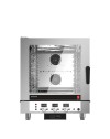 STEUERUNGSMÖGLICHKEITEN: Autoreverse (automatische Umkehrung der Drehrichtung des Gebläses) für perfektes gleichmäßiges Garen. Automatische Steuerung der Kammerentlüftung. Manueller Luftbefeuchter. LED-Garraumbeleuchtung. Einfacher Zugang zu programmierbaren Benutzerparametern, um das Gerät über Benutzermenüs individuell anzupassen. 2 Lüftungsgeschwindigkeiten, die reduzierte Geschwindigkeit aktiviert die Reduzierung der Heizleistung. Für spezielles Garen ist eine intermittierende Geschwindigkeit verfügbar. Kerntemperaturregelung mit 4-Punkt-Fühler (Kernfühler optional). Nadelkernsonde ø 1 mm, für Vakuumgaren und kleine Stücke (optional). USB-Anschluss zum Herunterladen von HACCP-Daten, Aktualisieren der Software und Hoch- und Herunterladen von Garprogrammen. SERVICE-Programm: Funktionstest der Elektronikplatine - Anzeige des Temperaturfühlers - Betriebsstundenzähler der Geräte für alle Hauptfunktionen zur planmäßigen Wartung. Funktionskontrolle mit Selbstdiagnose vor Inbetriebnahme des Geräts, mit anschaulicher und akustischer Signalisierung eventueller Fehler. EcoSpeed - Je nach Menge und Art des Produkts optimiert und steuert der Backofen die Energiezufuhr, hält stets die richtige Gartemperatur und vermeidet Schwankungen. EcoVapor - Mit dem EcoVapor-System wird der Wasser- und Energieverbrauch dank der automatischen Steuerung der Dampfsättigung im Garraum deutlich reduziert.