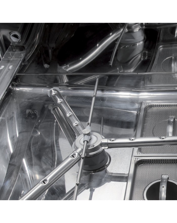 Stabilisierte Druckspülung und konstante Kesselwassertemperatur von 85°C. Dank des atmosphärischen Boilers wird eine Vermischung des Leitungswassers in der Nachspülphase vermieden. Das PLUS-System gewährleistet außerdem eine bessere Kontrolle und die richtige Dosierung des Klarspülers bei jedem Zyklus.