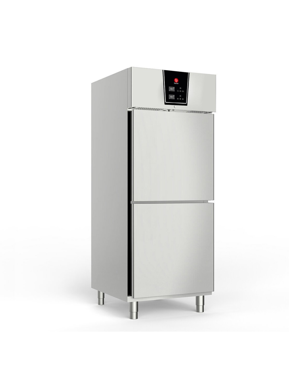 Eine Reihe von Kühlschränken, die speziell für kleine Räume entwickelt wurden und sich an die Standardgrößen von Küchen auf der ganzen Welt anpassen. In dieser Konfiguration passen die 500x680 Stützgitter seitlich auf die längere Seite. Die Kühlung wird durch ein belüftetes System mit Diffusor gewährleistet, um die Kälte gleichmäßig zu verteilen und eine optimale Konservierung der Lebensmittel zu gewährleisten.