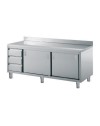 EDELSTAHL-ARBEITSPLATTE 18/10 AISI 304 SB Höhe 40 mm, Verstärkt mit laminiertem Holzpaneel, Aufkantung 100x15 mm