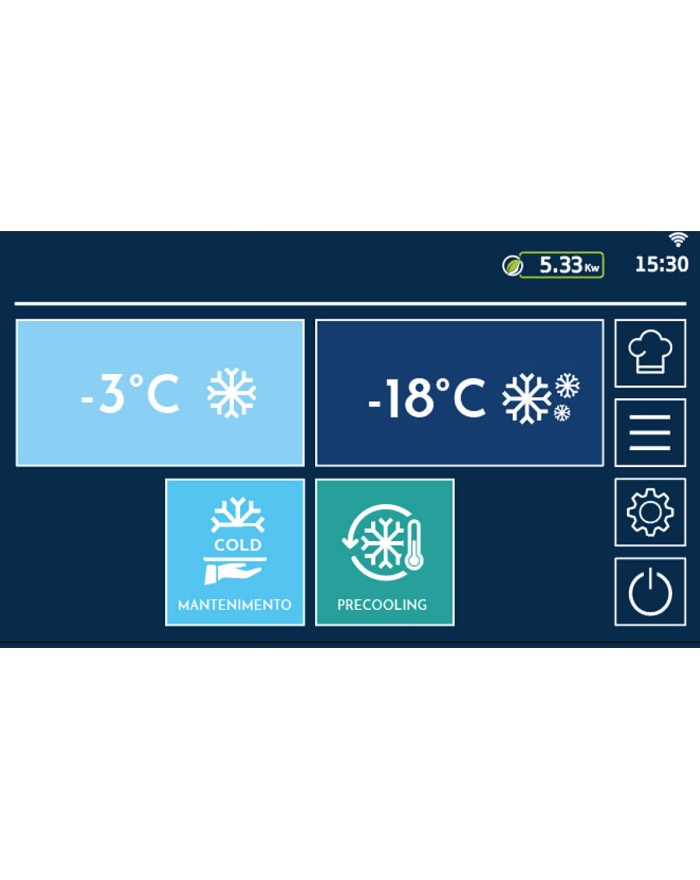 INTEGRIERTER MOTOR Neue Baureihe kompakter Schnellkühler auf Wagen mit integriertem Motor an Bord, um alle platzsparenden Anforderungen von Labors und professionellen Küchen zu erfüllen. Der SPEEDY FROST für Rollwagen Schnellkühler stellt eine vielseitige Lösung dar, die die Kühl- und Gefrieranforderungen von halbindustriellen Lebensmittelmengen mit einer Struktur kombiniert, die sich leicht in Ihren Produktionsbereich integrieren lässt. plus version T° Range +10° - 40° Schnellkühler auf Wagen - SPEEDY FROST HAUPTEIGENSCHAFTEN Einfahrschockkühler mit eingebautem Aggregat Funktionen: Schnellkühlung, Schockfrostern 7-Zoll-Display Full-Touch IOT 4.0-Konnektivität Beheizte Sonde mit 4 Ablesestellen LARGE: Wagen: 2 x GN 1/1 oder 1 x EN1; 1 x GN 2/1 oder 1 x EN2 Äußere Ausführung: Scotch-Brite satinierter Edelstahl für ein elegantes und leicht zu reinigendes Design. Verdampferschlange: Kupfer-Aluminium mit Korrosionsschutzbeschichtung, Gehäuse zum Öffnen für eine schnelle Wartung. Stark belüfteter Verdampfer: sorgt für Gleichmäßigkeit und maximale Effizienz bei den Schockkühlungszyklen. Kondenswasserschutz: in der Tür integriert, um die Bildung von Feuchtigkeit zu verhindern. Ergonomischer Griff: vertikal mit Magnetverschluss für sicheres Öffnen. Schutz und Sicherheit: externe Stoßfänger, Kältemittel R290, interne Komponenten aus Edelstahl AISI 304. Einfache Reinigung: Aufgehängter Verdampfer für einfaches Waschen und Ablaufen des Wassers. Garantierte Leistung: optimierte Kühlleistung für -25°C Verdampfung und +45°C Kondensation. USB-Anschluss für Firmware-Updates und HACCP-Daten-Download. Das 7-Zoll-Touch-Display ist an der Tür des Schockkühlers angebracht, so dass es immer griffbereit und auf einen Blick zu sehen ist. Mit seiner übersichtlichen Oberfläche und den intuitiven Symbolen ermöglicht es die sofortige Interaktion mit allen Maschinenfunktionen. Die Ablesbarkeit ist auch in intensiven Arbeitsumgebungen optimal und gewährleistet eine schnelle und einfache Steuerung der Einstellungen. Herausnehmbare und leicht zu reinigende Innenpuffer aus Edelstahl AISI 304 bieten effektiven Wandschutz und maximale Zellhygiene. Wirksamer Schutz der Innenwände des Kühlers beim Be- und Entladen sowie bei der Handhabung von Produkten. Zellentür mit erhöhter Stärke von 100 mm und Mehrpunkt-Magnetverschluss für perfekten Verschluss. Kellerboden aus Stahl AISI 304 mit rutschfester 5WL-Beschichtung, hergestellt aus einer mehrschichtigen Struktur, die hohe Festigkeit und volle Eignung für den Transport von schweren Lasten garantiert. 4 in der Zelle angeordnete Verdampfer mit großen Ventilatoren von 30 cm Durchmesser für eine optimale Kühlung des in den Wagen enthaltenen Produkts auf allen Ebenen. Verdampfereinheit aus Kupfer und Aluminium, geschützt durch eine Kataphoresebehandlung, ausgestattet mit einem zu öffnenden Gehäuse für einfache Wartungsarbeiten. Die positiven Kühlzyklen +90 / +3 °C sind in den Modi Hard und Soft programmierbar, mit Fühler- oder Zeitsteuerung, um maximale Flexibilität und Präzision bei der Produktbehandlung zu gewährleisten. Die Gefrierzyklen +90 / -18 °C sind in den Modi Hard und Soft programmierbar, mit Sonden- oder Zeitsteuerung, um maximale Flexibilität und Präzision bei der Produktbehandlung zu gewährleisten. Möglichkeit der Temperaturerhaltung am Ende des Schockkühl- oder Tiefkühlzyklus.