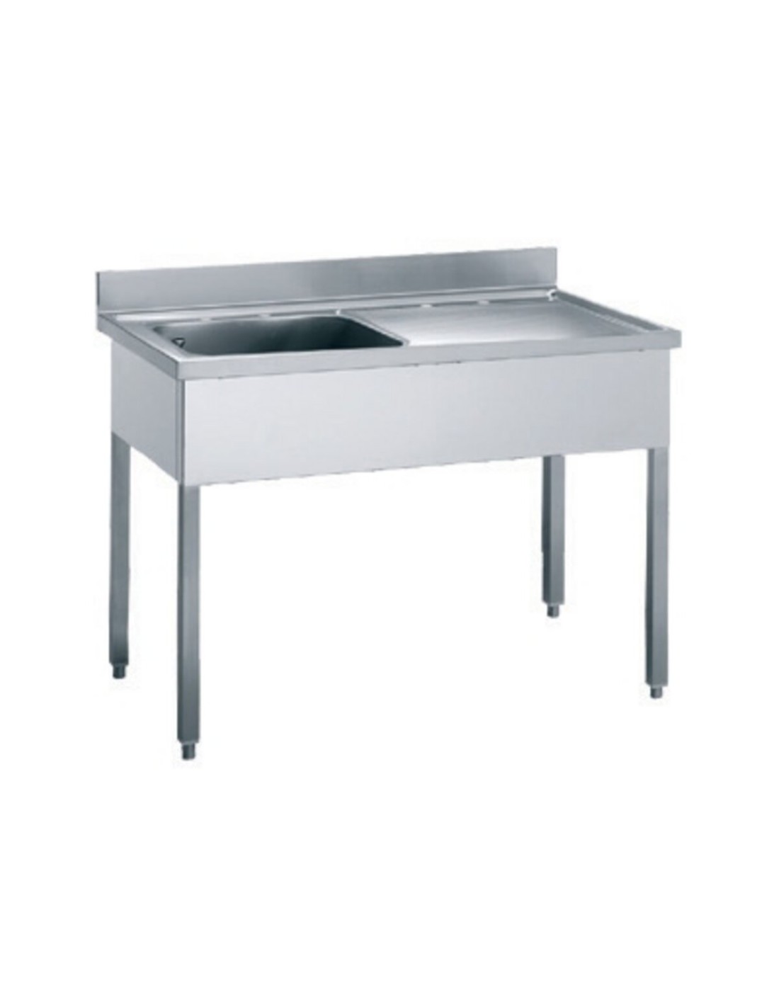 EDELSTAHLARBEITSPLATTE 18/10 AISI 304 SB Höhe 40 mm Aufkantung 100x15 mm Eingelassen mit geprägter Abtropffläche, Becken am Tisch geschweißt, mit Ablaufloch, Sieb, und Überlauf