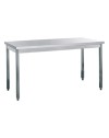 AISI Edelstahltisch, robust und hygienisch, ideal für kommerzielle oder industrielle Umgebungen. Funktionelles Design mit widerstandsfähigen und langlebigen Materialien. Der Rahmen besteht aus robustem Edelstahl 18/10 AISI 304 gebürstet mit einem Rohrquerschnitt von 40x40 mm und hat Abmessungen von 20 mm auf allen vier Seiten der Arbeitsplatte. Diese Konstruktion verleiht nicht nur eine solide Struktur, sondern auch eine raffinierte und funktionale Ästhetik im Kontext der Verwendung, die Haltbarkeit und Hygiene garantiert. Die Arbeitsplatte aus Edelstahl AISI 304 SB mit einer Stärke von 40 mm bietet Robustheit und Haltbarkeit. Der 100x15 mm große hinterer Aufkantung fügt Stil und Funktionalität hinzu und ergänzt das praktische und elegante Erscheinungsbild. Scotch-Brite-Edelstahl-Ausführung. Arbeitsplatte mit griffsicheren Falten. Verstärkte wasserabweisende und schallschluckende Unterseite. Beine aus Vierkantrohr 40x40 mm, verstellbare Füße. Kann mit Regal, 3-seitigem Rahmen, Schubladen und Rollen ausgestattet werden.