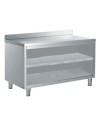 EDELSTAHL-ARBEITSPLATTE 18/10 AISI 304 SB Höhe 40 mm, Verstärkt mit laminiertem Holzpaneel, Aufkantung 100x15 mm