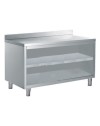 EDELSTAHL-ARBEITSPLATTE 18/10 AISI 304 SB Höhe 40 mm, Verstärkt mit laminiertem Holzpaneel, Aufkantung 100x15 mm