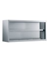 Scotch-Brite-Ausführung aus rostfreiem Stahl, höhenverstellbarer Innenboden mit handfesten Klappen. Komplett mit Halterungen für die Wandmontage.