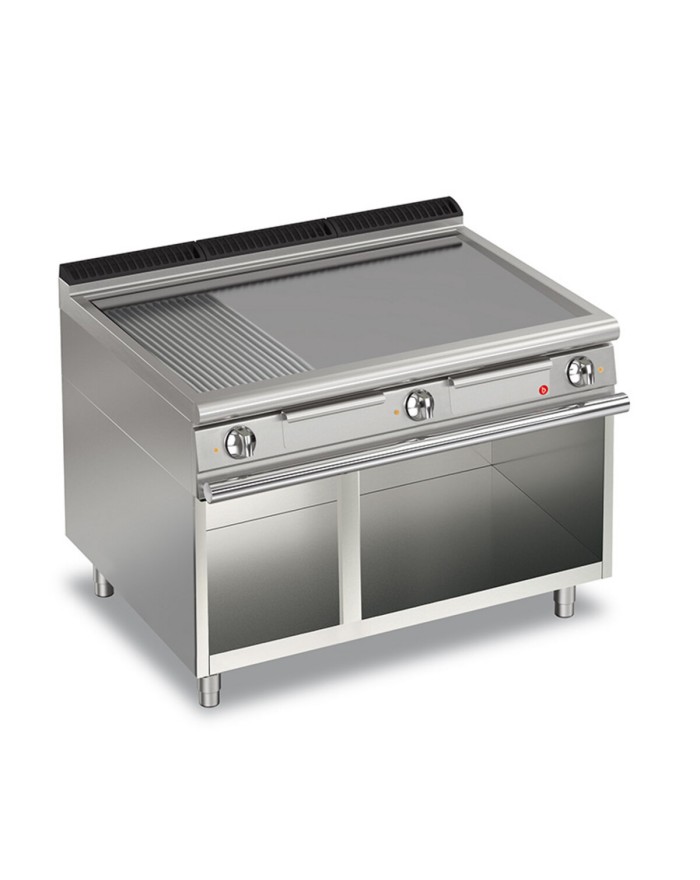 Cooking plate lowered from the plane by 4 cm and tilted 1 cm toward the front of the machine for grease drainage.