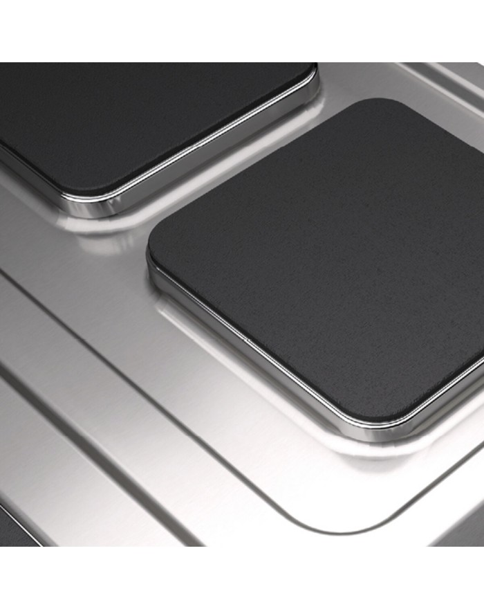 All-molded hob made from a single sheet of thick stainless steel.