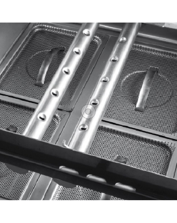 Stainless steel tank protection filters, easily removed without disassembling the washing arms, to keep the wash water free of heavy dirt and food residues. Stainless steel washing and rinsing arms, Double side drive system with built-in clutch that prevents derailment.