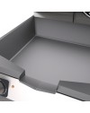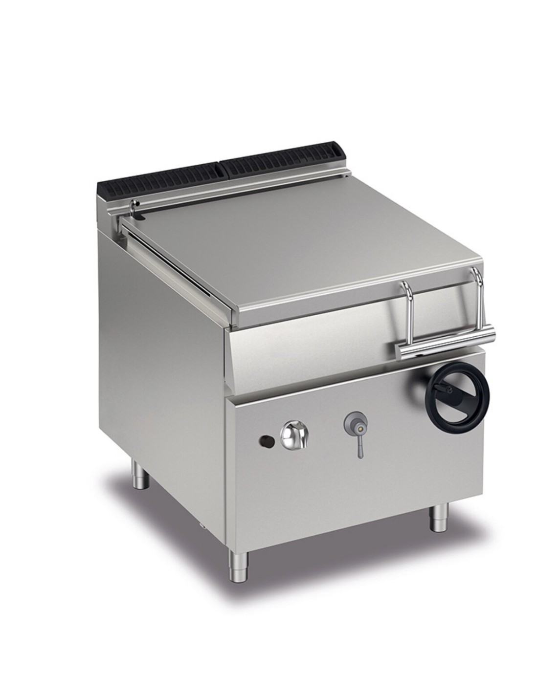 Large-radius tilting tank. Water filling via solenoid valve and fixed tap at the top. Thanks to the jet-proofing certification obtained through specific tests, knobs and under-knobs can be washed at the end of the working day without compromising functionality and safety. The front bar is a comfortable foothold for the cook; it keeps a safe distance from the worktop and thus protects against accidental collisions with what is resting on the worktops and at the same time the handles.