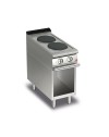 Electric Ranges: 300x300 mm cast iron plates, maximum power of 4 kW, safety thermostat and 7-position selector, water jet protection (IPX5). Certified equipment compliant with Low Voltage Directive 2014/35/EU under the international CB scheme.All-molded hob made from a single sheet of thick stainless steel.