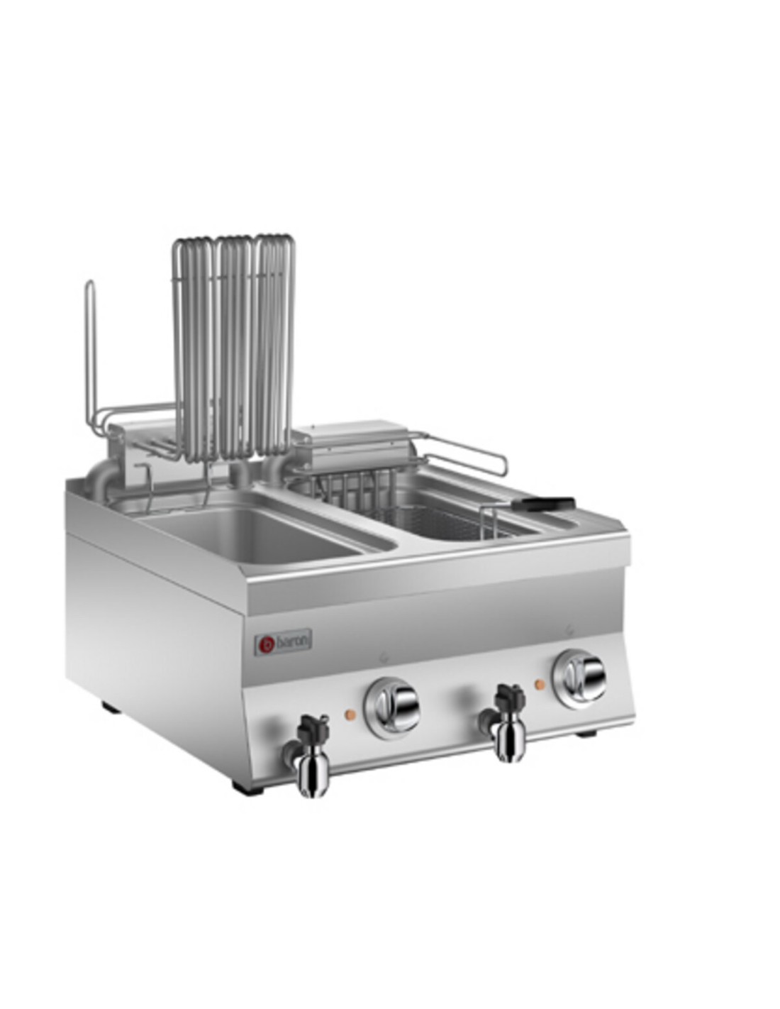In the gas fryer, the burner is external to the tank and is made of stainless steel with a stabilised flame. Piezo ignition and safety ensured by valve with thermocouple and pilot flame.