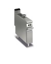 Professional Gas Fryers: AISI 18/10 stainless steel tanks with a cold zone and foam expansion area. Equipped with oil drain taps and a safety thermostat (230°C) to prevent excessive oil overheating. Gas version: Heating via an external stainless steel burner (also available in a single-tank model with an in-tank burner). Oil temperature controlled by a mechanical thermostat, adjustable from 100 to 185°C.Stainless steel outer shells and feet.