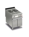 Professional Gas Fryers: AISI 18/10 stainless steel tanks with a cold zone and foam expansion area. Equipped with oil drain taps and a safety thermostat (230°C) to prevent excessive oil overheating. Gas version: Heating via an external stainless steel burner (also available in a single-tank model with an in-tank burner). Oil temperature controlled by a mechanical thermostat, adjustable from 100 to 185°C.Stainless steel outer shells and feet. Working table height adjustable from 840 to 900 mm. Tops with a thickness of 2 mm. AISI 18/10 stainless steel tanks with cold zone and foam expansion zone. Oil drain taps. Oil drip pans on request. Safety thermostat (230°C) against excessive oil temperatures Gas version: Heating by stainless steel burner outside the tank (1-tank model with in-tank burner also available). Oil temperature controlled by mechanical thermostat with adjustment from 100 to 185°C. Electric version: Heating by means of an AISI 304 stainless steel armoured heating element inside the tank and rotatable by more than 90° in the 22lt tank version. Fully removable heating element in das 10 and 15-liter tank version. The tanks have a large pouring area and a cold zone at the bottom to collect food particles and prolong the life of the oil. Dirt collecting convector included. This element facilitates the deposition of dirt in the cold zone, preventing dirt from depositing in the hot zones of the tank. The life cycle of the oil is thus longer. Thanks to the jet-proofing certification (IPX5) obtained through specific tests, knobs and under-knobs can be washed at the end of the working day without compromising functionality and safety. The front bar is a comfortable foothold for the cook; it keeps a safe distance from the worktop and thus protects against accidental collisions with what is resting on the worktops and at the same time the handles.