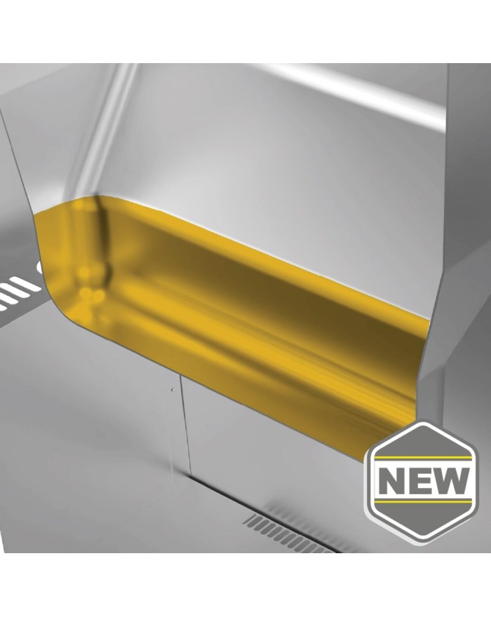 The tanks have a large pouring area and a cold zone at the bottom to collect food particles and prolong the life of the oil. Dirt collecting convector included. This element facilitates the deposition of dirt in the cold zone, preventing dirt from depositing in the hot zones of the tank. The life cycle of the oil is thus longer. Thanks to the jet-proofing certification obtained through specific tests, knobs and under-knobs can be washed at the end of the working day without compromising functionality and safety. The front bar is a comfortable foothold for the cook; it keeps a safe distance from the worktop and thus protects against accidental collisions with what is resting on the worktops and at the same time the handles.