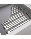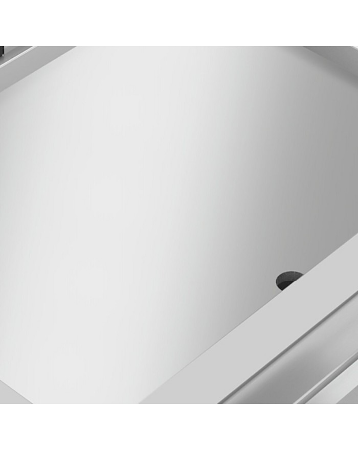 Cooking plate lowered from the plane by 4 cm and tilted 1 cm toward the front of the machine for grease drainage.