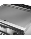 Plate welded to the hob that provides a larger cooking zone and eliminates dirt accumulation areas. Plate with armoured incoloy heating elements placed under the bottom for cooking with temperature uniformity. Mild steel plate (for non-EU markets). Equipment certified for low voltage directive 2014/35/EU according to the international CB scheme. Thanks to the jet-proofing certification (IPX5) obtained through specific tests, knobs and under-knobs can be washed at the end of the working day without compromising functionality and safety. The front bar is a comfortable foothold for the cook; it keeps a safe distance from the worktop and thus protects against accidental collisions with what is resting on the worktops and at the same time the handles.