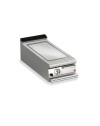 Fry Top: 15mm thick cooking plate, fully independent from the surface. It features a wide, drainable channel around the entire perimeter of the plate to collect cooking residues, sloped towards the front for liquid drainage into a large grease collection drawer. The plate is not welded, allowing for quicker maintenance and potential replacements on-site. It ensures thermal uniformity, with a thermal cut that benefits both the user and adjacent machinery, reducing energy consumption by 15% compared to traditional models.Stainless steel outer shells and feet.