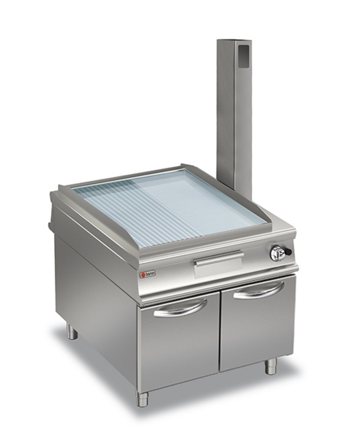 PASS-THROUGH GAS FRY-TOP PLATE 1/2 SMOOTH 1/2 RIBBED CHROME - ON CABINET WITH DOORS