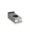 Safety sensor to prevent overheating. Power can be selected from 10 different levels for all types of cooking, from express to delicate. Thanks to the jet-proofing certification (IPX5) obtained through specific tests, knobs and under-knobs can be washed at the end of the working day without compromising functionality and safety. The front bar is a comfortable foothold for the cook; it keeps a safe distance from the worktop and thus protects against accidental collisions with what is resting on the worktops and at the same time the handles. Electric wok with induction heating 1 independent 5Kw cooking zone - diameter 30cm