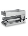 Stainless steel salamander, ideal for grilling and gratinating food. The inclined structure allows easy temperature control.