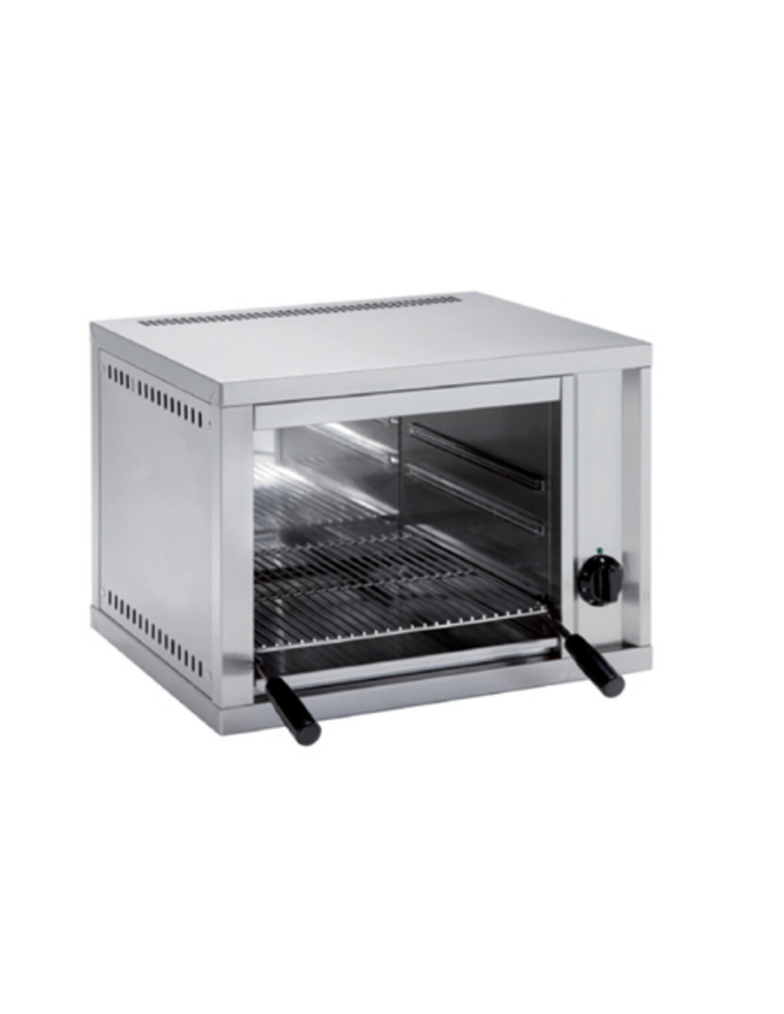 Stainless steel salamander, ideal for grilling and gratinating food. The inclined structure allows easy temperature control.
