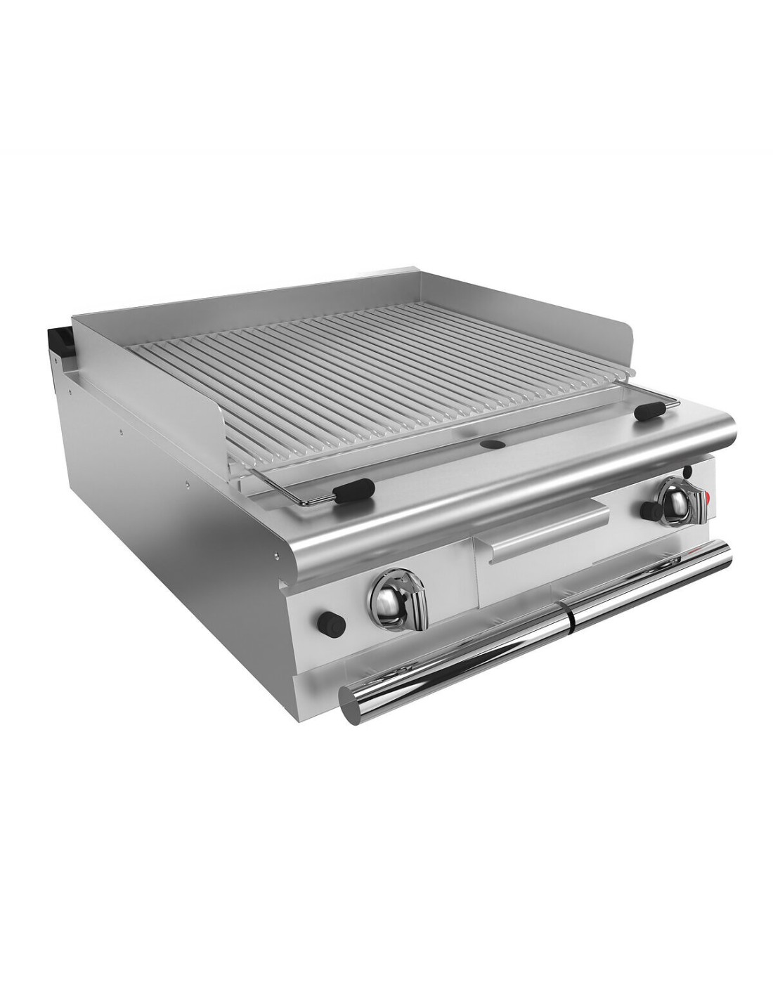 Larger, recessed grease trough on the worktop, easier to clean and more capacious HUMIDIFIER accessory for optimal management of several types of cooking. Grill height adjustment for handling different types of cooking 4 Grill types available: meat, fish, mixed stainless steel and reversible cast iron meat/fish version Changing the type of cooking also in the utility GAS Grill / lava stone, with dedicated accessories In gas versions, the power is regulated by a continuously variable tap to adapt the heat of the hotplate to the type of cooking