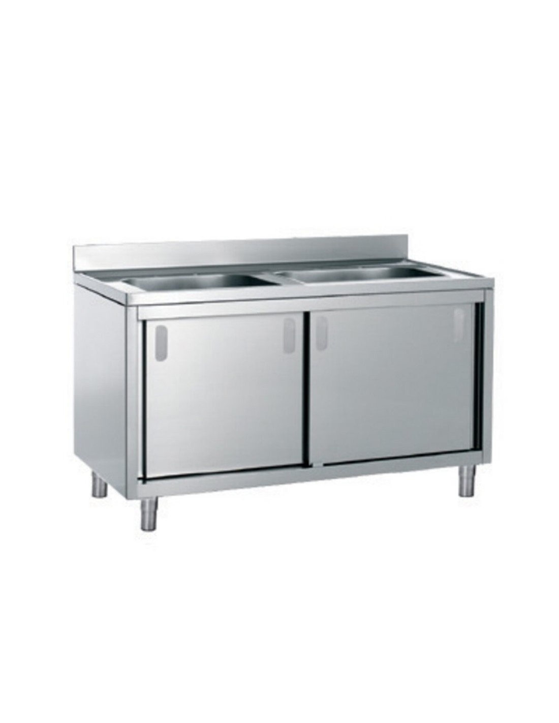 Execution in Scotch-Brite stainless steel.Worktop with moulded tray. Rear riser h