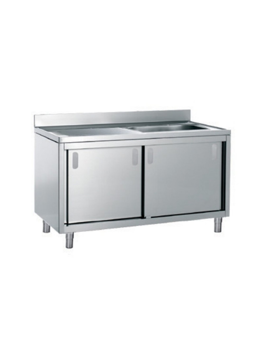 Execution in Scotch-Brite stainless steel.Worktop with moulded tray. Rear riser h