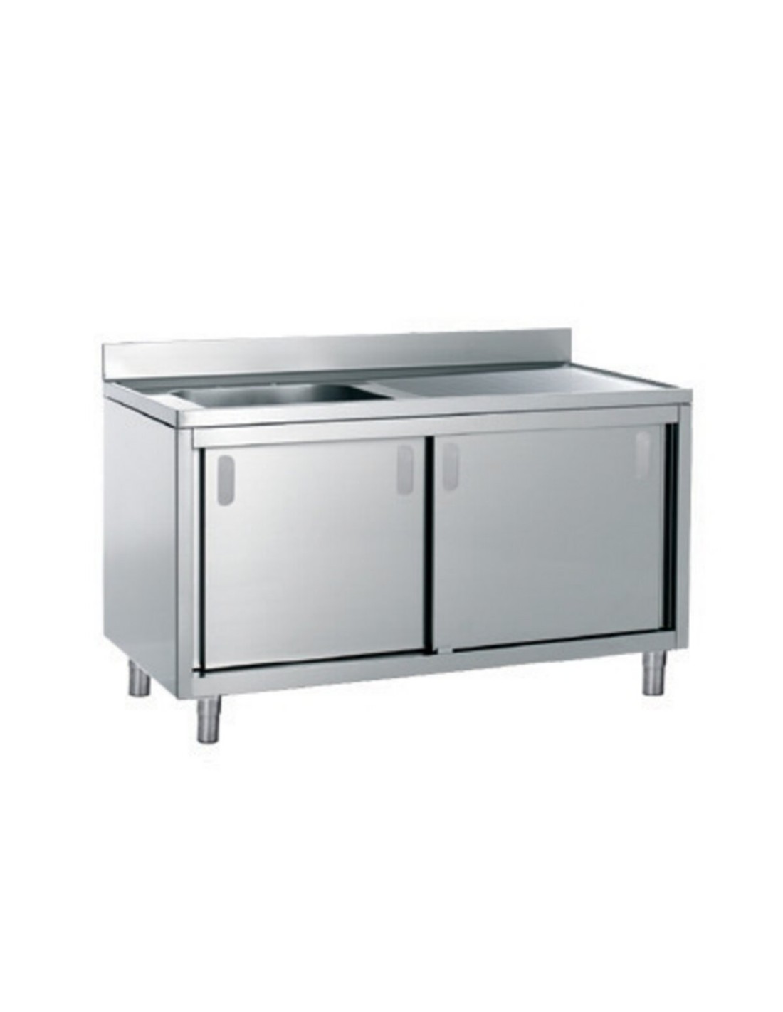 Execution in Scotch-Brite stainless steel.Worktop with moulded tray. Rear riser h