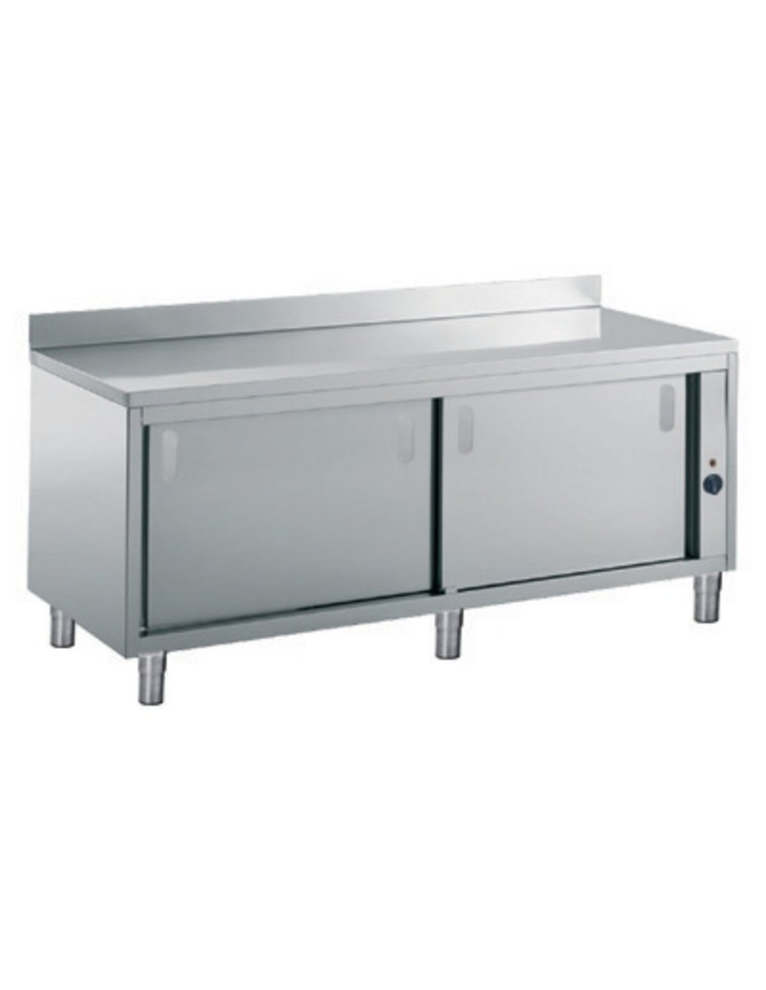 WARM CUPBOARD TABLE WITH SPLASHBACK -2 SLIDING DOORS AND LOWER SHELF