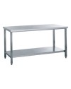 AISI Stainless Steel Table, sturdy and hygienic, ideal for commercial or industrial environments. Functional design with durable and long-lasting materials. Frame made of sturdy, brushed 18/10 AISI 304 stainless steel with a 40x40 mm tubular section, features 20 mm recessed dimensions on all four sides of the worktop. This design gives not only a solid structure, but also a refined aesthetic that is functional in the context of use, ensuring durability and hygiene. The 40mm-thick AISI 304 SB stainless steel worktop offers strength and durability. The 100x15 mm splashback adds style and functionality, complementing the practical and elegant appearance. Lower shelf made of AISI 304 stainless steel features central longitudinal reinforcement for added strength. Installed 150 mm from the ground, it offers ideal practicality and strength. Scotch-Brite stainless steel execution. Worktop with hand-safe folds. Reinforced water-repellent and sound-absorbing undersurface. Square tube legs 40x40 mm, adjustable feet. Can be equipped with shelf, 3-sided frame, drawers and castors.