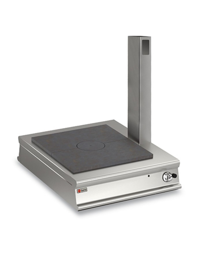 Revestimiento exterior de acero inoxidable y acabado Scotch Brite. Tapas de 2 mm de grosor. Salpicaderos contorneados con mandos inclinados hacia el operador. Placa de cocción de acero pulido. Calentamiento de la placa (4 zonas) mediante 4 resistencias de 4 kW. Regulación de la temperatura de las resistencias de 50 a 400°C mediante termostato. Indicador luminoso de actividad de calefacción.