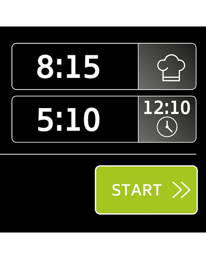 Posibilidad de programar 2 temporizadores para controlar la cocción. Una señal acústica avisa al operador al final del tiempo programado.