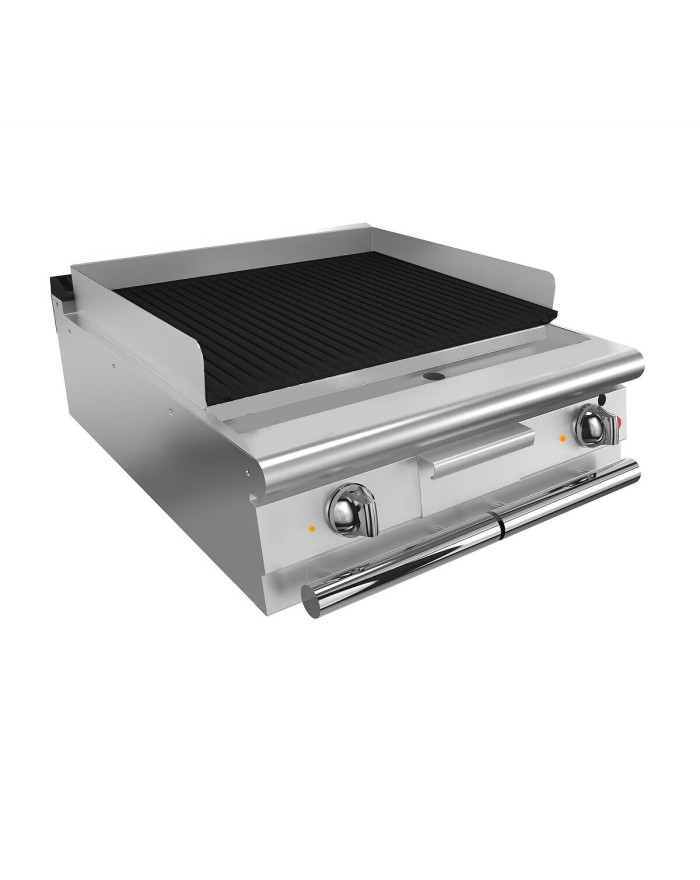 En las versiones de gas, la potencia se regula mediante un grifo de variación continua para adaptar el calor de la placa al tipo de cocción