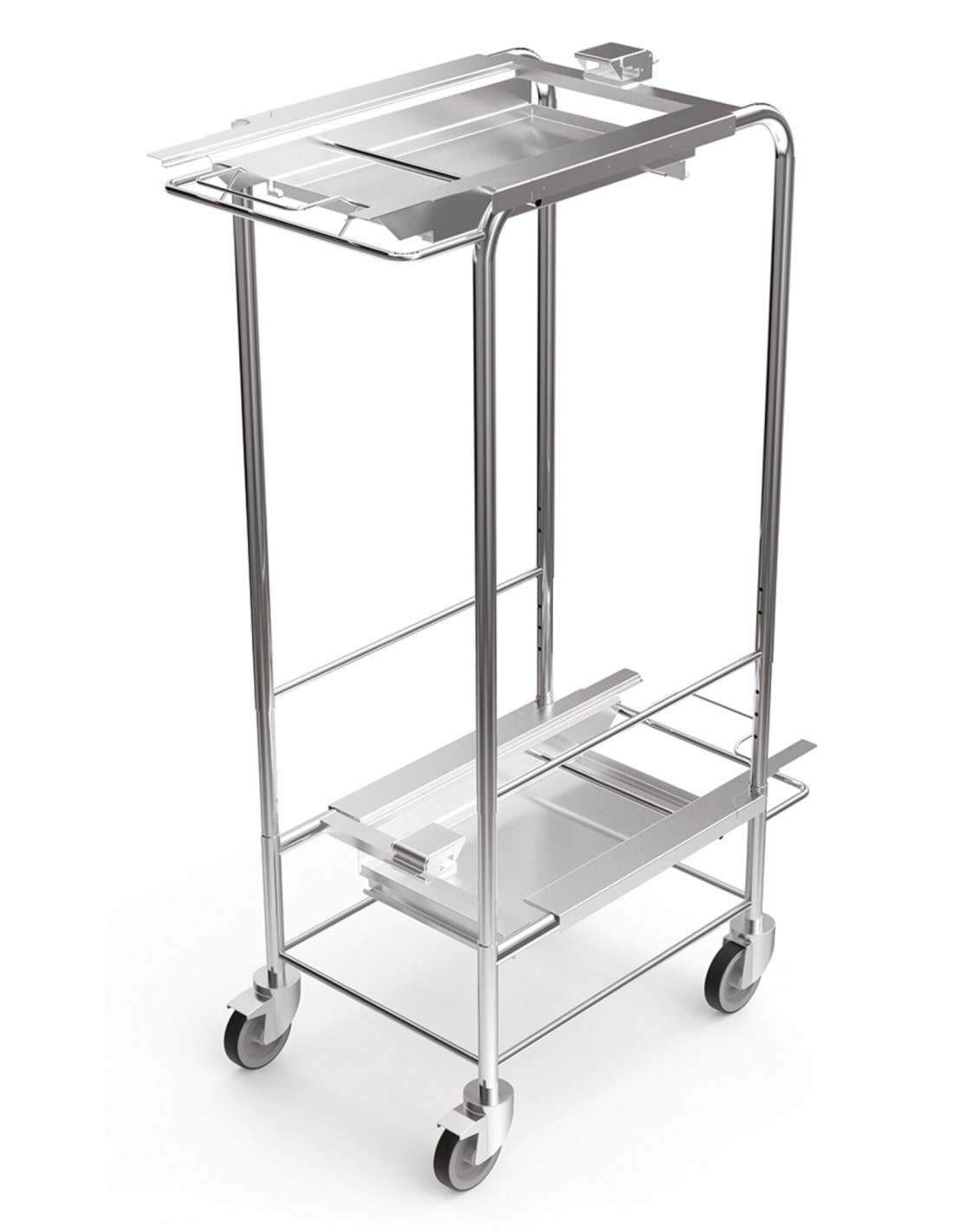CARRO DE ALTURA REGULABLE, PARA LA EXTRACCIÓN DE ESTRUCTURAS CON BANDEJA DE RECOGIDA Y CON SISTEMA DE ENGANCHE Y DESENGANCHE DE