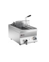 En la freidora de gas, el quemador es externo a la cuba y está fabricado en acero inoxidable con llama estabilizada. Encendido piezoeléctrico y seguridad garantizada por válvula con termopar y llama piloto.