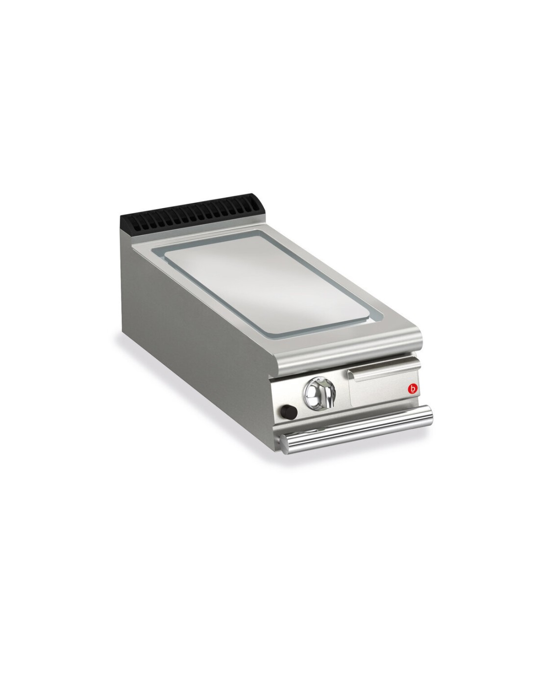 Fry top: placa de cocción de 15 mm de espesor totalmente independiente de la placa de cocción, Gran canal de desagüe a lo largo de todo el perímetro de la placa para la recogida de los residuos de cocción, inclinado hacia la parte delantera para el desagüe de los líquidos en el gran cajón recogegrasas, Placa no soldada para un mantenimiento rápido y una eventual sustitución en uso, Uniformidad térmica, Corte térmico que facilita el trabajo del usuario y de la maquinaria adyacente y reduce el consumo en un 15% en comparación con los modelos tradicionales.Carcasa exterior y pies de acero inoxidable. Altura de la mesa de trabajo regulable de 840 a 900 mm. Tapas de 2 mm de grosor. Placa de cocción de 15 mm de espesor totalmente independiente de la placa de cocción. Gran canal inundable alrededor del perímetro de la placa de cocción para recoger los residuos de cocción, inclinado hacia la parte delantera para drenar los líquidos en el cajón grande. Placas de cocción de superficie satinada y recubiertas de hierro dulce, acero AISI430 o cromo duro pulido, todas ellas disponibles en versión lisa, mixta o estriada. Gran cajón recogegrasas. Tamaño de los módulos: 40,60,80 En los módulos de 120 de ancho, la placa de cocción está rebajada 40 mm desde arriba e inclinada 10 mm hacia la parte delantera de la máquina. Versión de gas: quemador tubular de llama autoestabilizada con gran uniformidad de distribución del calor. Regulación de la temperatura mediante grifo modulante (temperatura superior a 300°C) o válvula termostática de seguridad con termopar (90-280°C). Cajón de recogida de grasas con capacidad para todo el volumen del canal perimetral Placa no soldada para un mantenimiento y sustitución rápidos en el servicio público El diseño de la placa rayada garantiza la limpieza hasta el final de la placa Placa no soldada a la bancada de la máquina con optimización de los puntos estructurales sometidos a tensión térmica Placa no soldada para acelerar las intervenciones de mantenimiento y las eventuales sustituciones en usuarios Corte térmico que facilita el trabajo al usuario y a la maquinaria adyacente. Temperatura de cocción uniforme en toda la placa. Optimizando el calor en la zona de cocción y aumentando la comodidad del operario en la cocina. Temperatura de cocción uniforme en toda la placa. Optimizando el calor en la zona de cocción y aumentando la comodidad del operario en la cocina. Kit dispensador de agua disponible como accesorio
